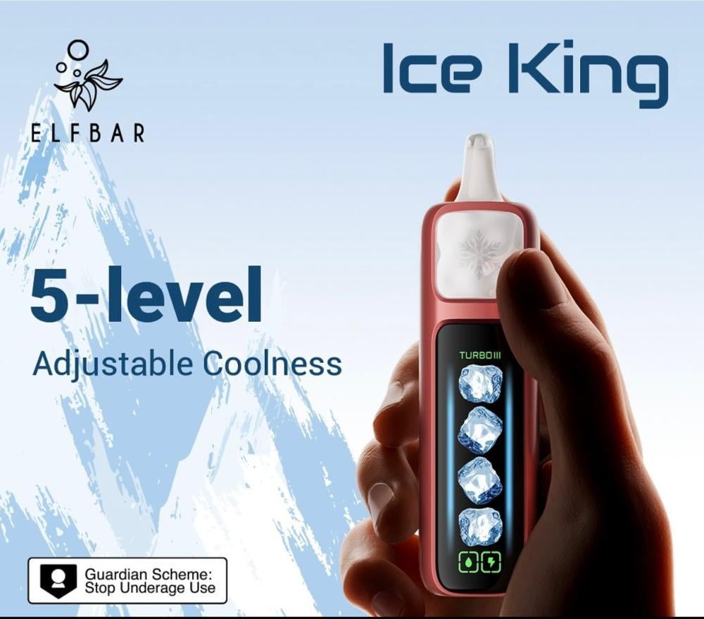 Enjoy the ultimate vaping experience with the Ice King 1000 Bar device that offers an amazing 30,000 puffs for a long-lasting experience. The device features a powerful 850mAh rechargeable battery and an innovative design that allows you to control the coldness levels through 5 different levels to suit your taste: Breeze, Cool, Chill, Frost, Arctic Freeze.